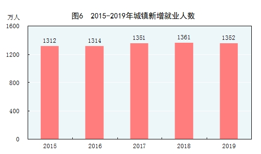 年末全国就业人员77471万人,其中城镇就业人员44247万人,占全国就业人员比重为57.1%,比上年末上升1.1个百分点。全年城镇新增就业1352万人,比上年少增9万人。年末全国城镇调查失业率为5.2%,城镇登记失业率为3.6%。全国农民工[12]总量29077万人,比上年增长0.8%。其中,外出农民工17425万人,增长0.9%;本地农民工11652万人,增长0.7%。