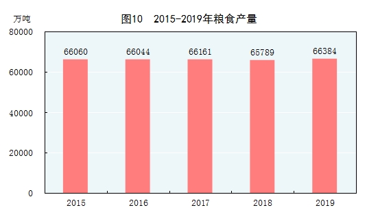 全年粮食产量66384万吨,比上年增加594万吨,增产0.9%。其中,夏粮产量14160万吨,增产2.0%;早稻产量2627万吨,减产8.1%;秋粮产量49597万吨,增产1.1%。全年谷物产量61368万吨,比上年增产0.6%。其中,稻谷产量20961万吨,减产1.2%;小麦产量13359万吨,增产1.6%;玉米产量26077万吨,增产1.4%。