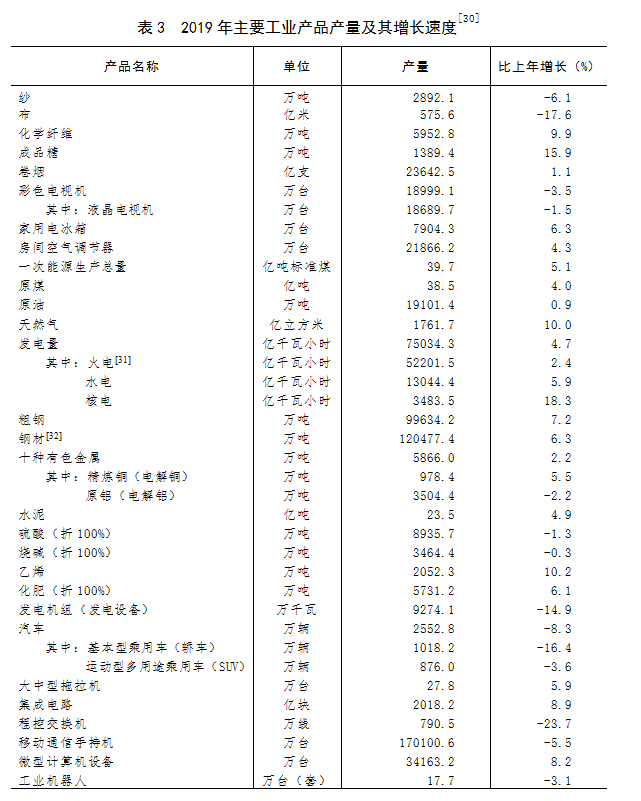 [30]2018年部分产品产量数据根据第四次全国经济普查结果进行了修订,2019年产量增速按可比口径计算。