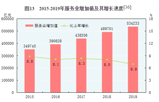 [21]战略性新兴服务业包括新一代信息技术产业,高端装备制造产业,新材料产业,生物产业,新能源汽车产业,新能源产业,节能环保产业和数字创意产业等八大产业中的服务业相关行业,以及新技术与创新创业等相关服务业。2019年战略性新兴服务业企业营业收入增速按可比口径计算。
