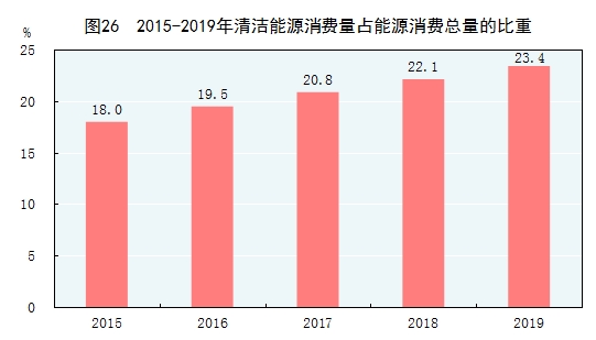 初步核算,全年能源消费总量[81]48.6亿吨标准煤,比上年增长3.3%。煤炭消费量增长1.0%,原油消费量增长6.8%,天然气消费量增长8.6%,电力消费量增长4.5%。煤炭消费量占能源消费总量的57.7%,比上年下降1.5个百分点;天然气、水电、核电、风电等清洁能源消费量占能源消费总量的23.4%,上升1.3个百分点。重点耗能工业企业单位电石综合能耗下降2.1%,单位合成氨综合能耗下降2.4%,吨钢综合能耗下降1.3%,单位电解铝综合能耗下降2.2%,每千瓦时火力发电标准煤耗下降0.3%。全国万元国内生产总值二氧化碳排放下降4.1%。