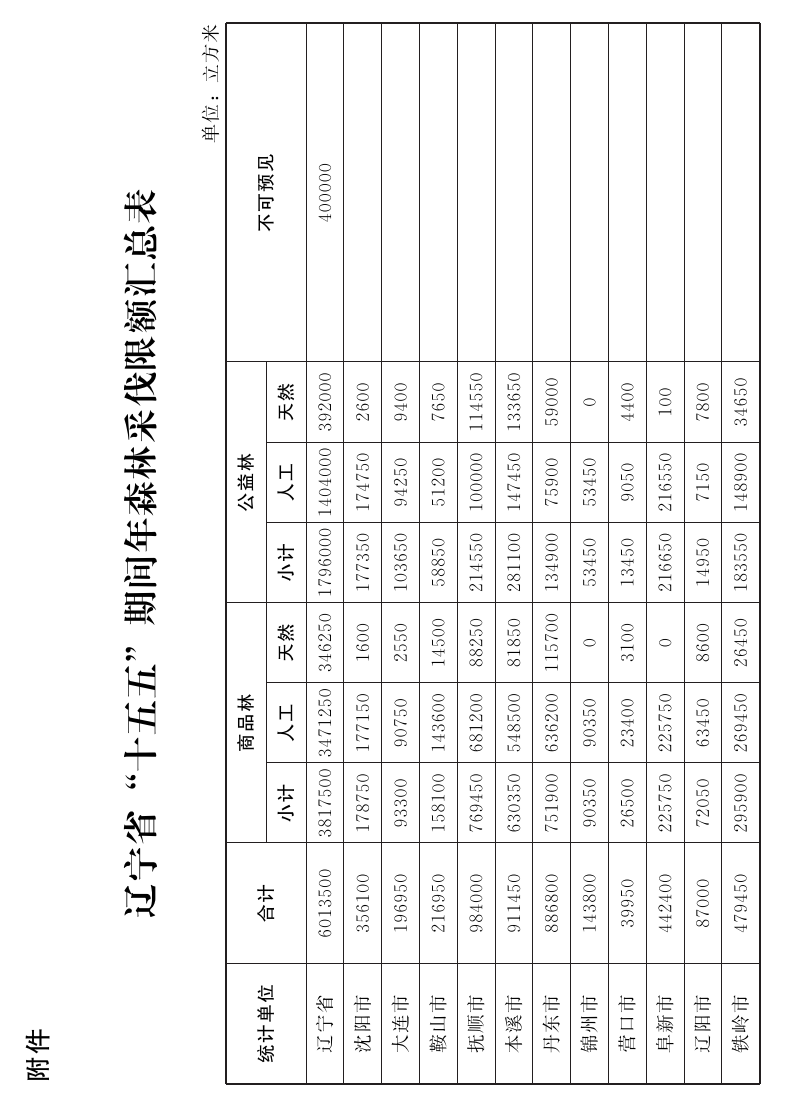 附件:辽宁省“十五五”期间年森林采伐限额汇总表