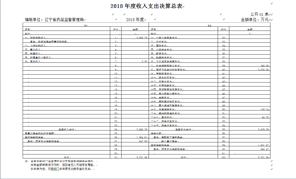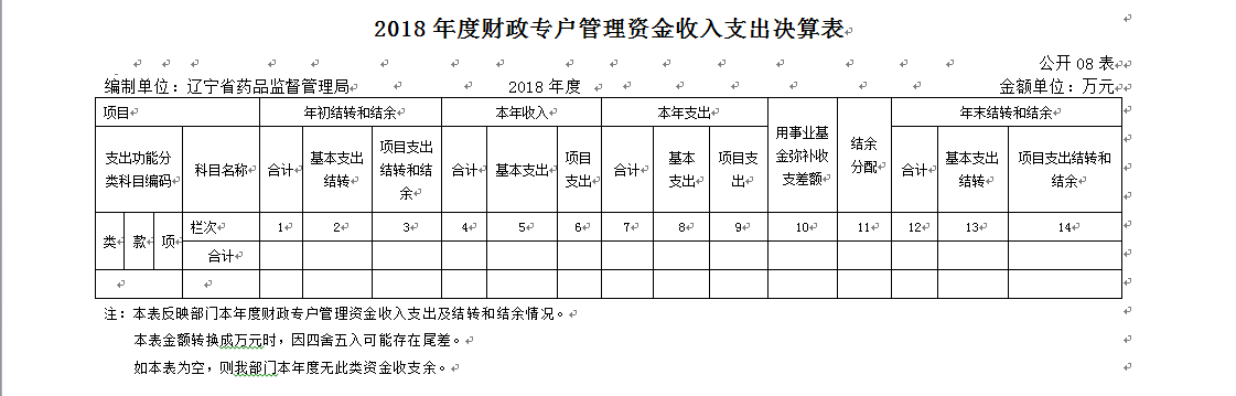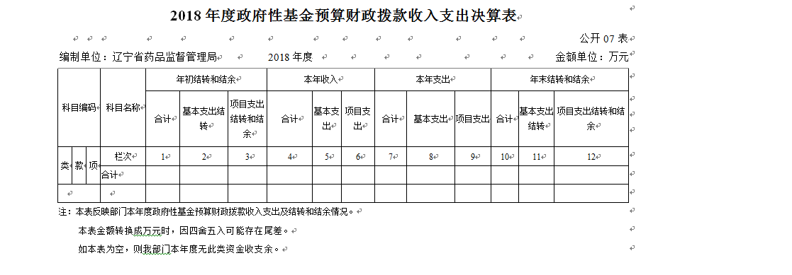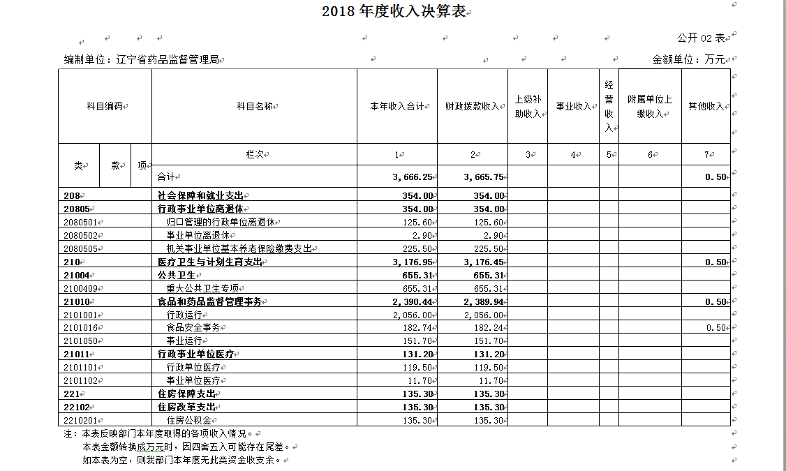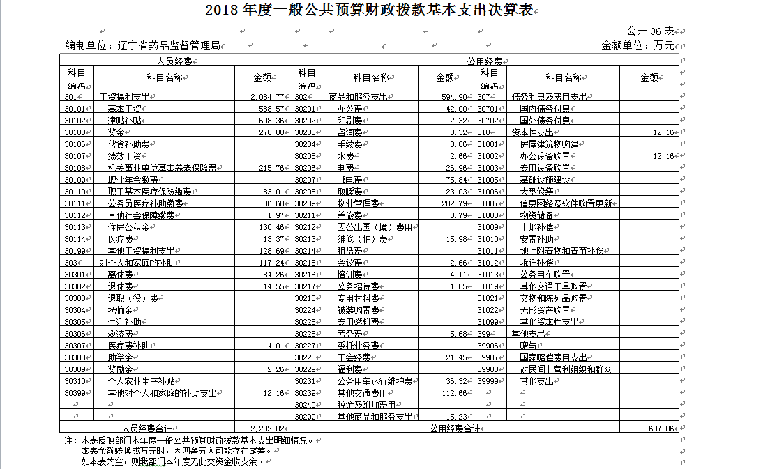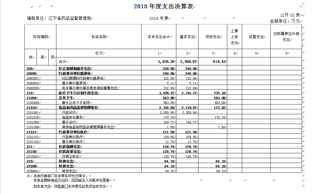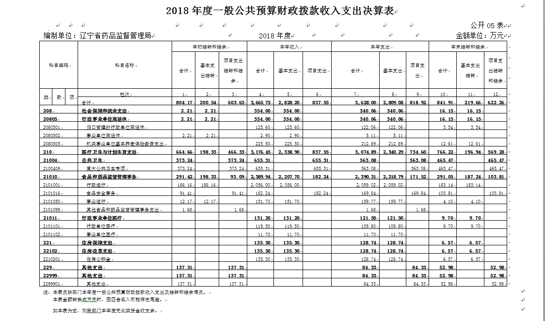 第四部分 辽宁省药品监督管理局2018年度部门决算表